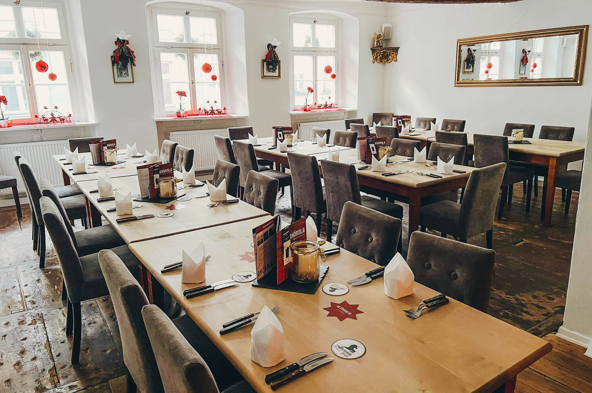 Unsere Jungköche interpretieren die traditionelle fränkische Küche auf eine moderne Art und Weise für jeden Geschmack. Passend zu jeder Jahreszeit servieren wir kreative und zugleich authentische Gerichte. Unsere Speisen werden vornehmlich mit regionalen Zutaten und Bioprodukten frisch zubereitet.