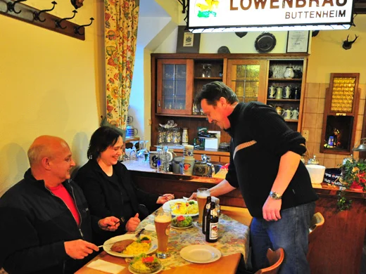Johann „Hansi“ Modschiedler, Brauer, Gastronom und Kreisrat, gehört zu den fränkischen Originalen im Bamberger Land. Die Küche des Hauses ist weit über den Landkreis hinaus bekannt, weswegen man möglichst reservieren sollte. Grund dafür ist das süffige Bier sowie die Gerichte rund um Karpfen und Bonakern (Bohnenkerne).