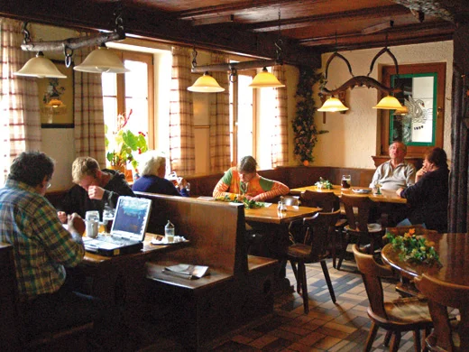 Das Fachwerkgebäude der Brauereigaststätte steht schon lange unter Denkmalschutz. Hier aßen und tranken die Gäste über Jahrhunderte und konnten auch übernachten. Barbara Hübner nimmt alle drei Säulen dieser Gastlichkeit besonders ernst und verwöhnt die Gäste mit einem Komplettprogramm. Zum süffigen dunklen Vollbier bereitet sie Spezialitäten wie Kuttelfleck oder alle vier Wochen ihre legendären Bierhaxen. Natürlich kann der Biergenießer auch jederzeit ein Zimmer buchen.