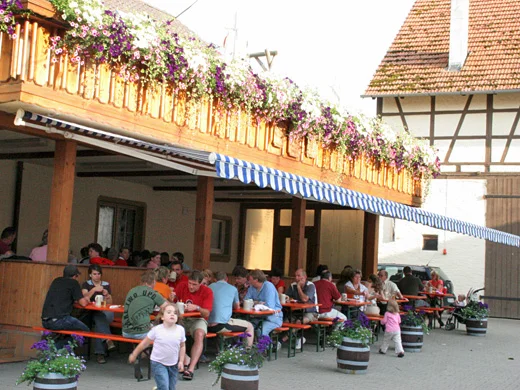 Die Küche bietet Hausmacher-Brotzeiten und täglich eine mittelgroße Karte mit warmen Gerichten. Die Spezialitäten sind Pfefferhähnchen, Currywurst und Mettwurstbrot mit Zwiebeln. Dazu gibt es das gute Lagerbier und natürlich den täglichen Plausch über die Neuigkeiten des kleinen Ortes.