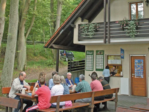 Auf den ersten Blick kommt einem der Keller wie eine Bierinsel am Straßenrand vor. Wenn man aber in den Schatten der alten Bäume tritt, wird man von der heimeligen Atmosphäre umfangen. Zu essen gibt es eine breite Palette an Brotzeiten aus eigener Schlachtung wie die Kellerplatte und selbstgemachten Gerupften.