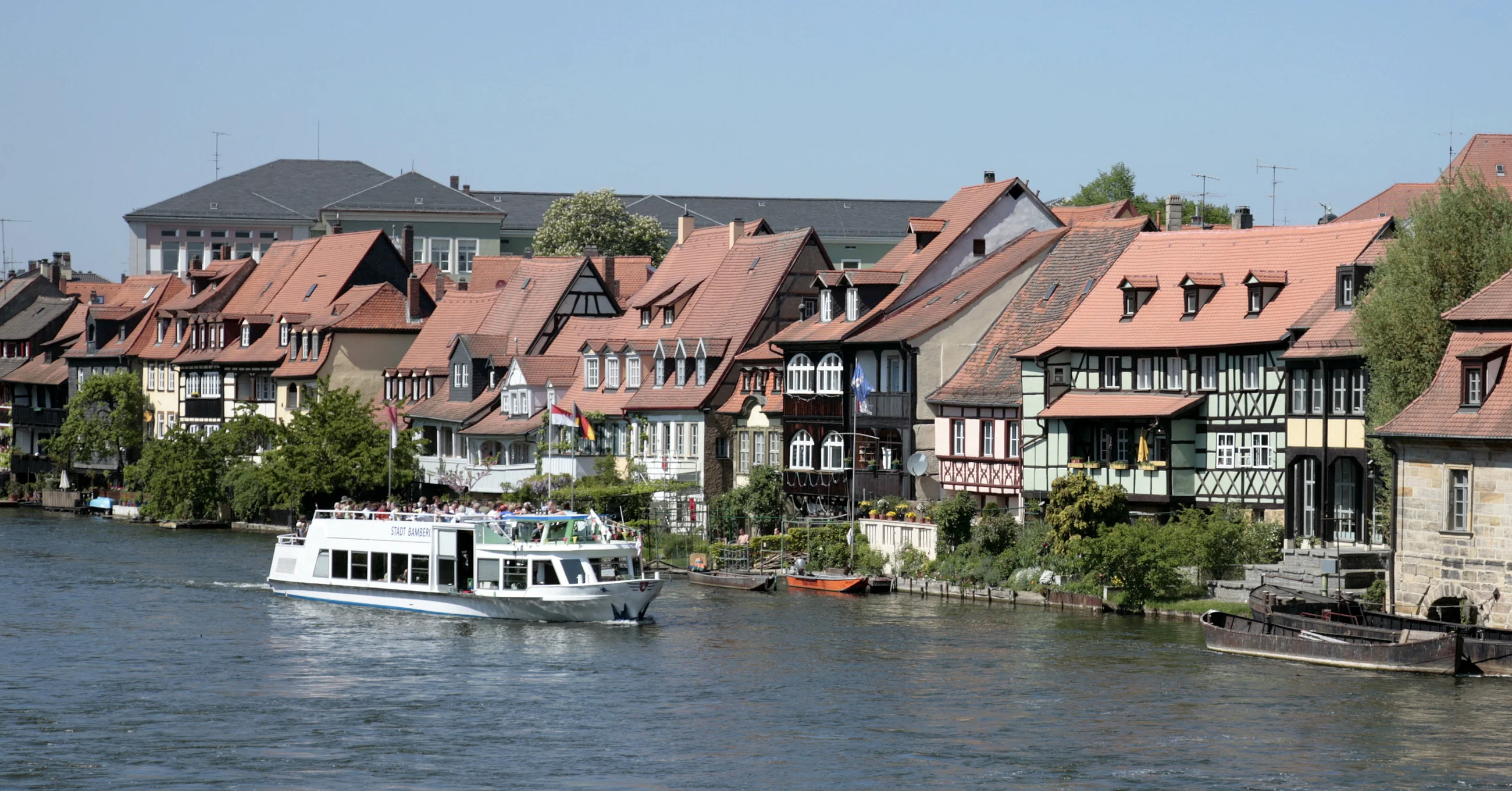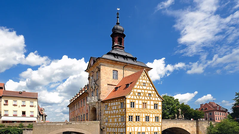 Das Alte Rathaus ist auf einer künstlichen Insel direkt in die Regnitz gebaut. Von hier aus hat man auch einen wunderbaren Blick auf die ehemalige Fischersiedlung Klein Venedig: Mittelalterliche Fachwerkhäuser reihen sich entlang der Regnitz. Mit zahlreichen charmanten kleinen Läden und exklusiven Angeboten lädt die Inselstadt, die lebendige Mitte Bambergs, zum Einkaufsbummel ein.