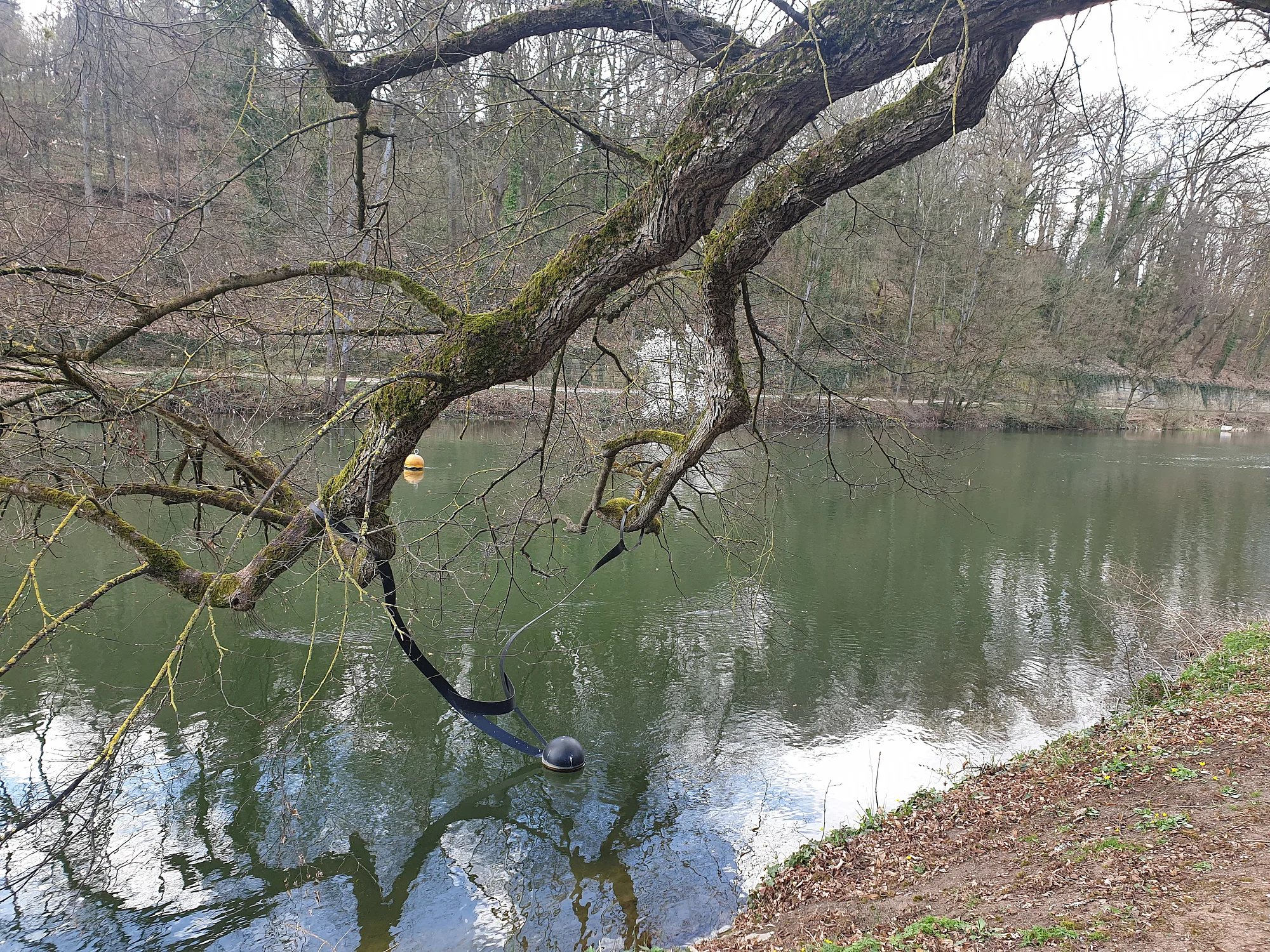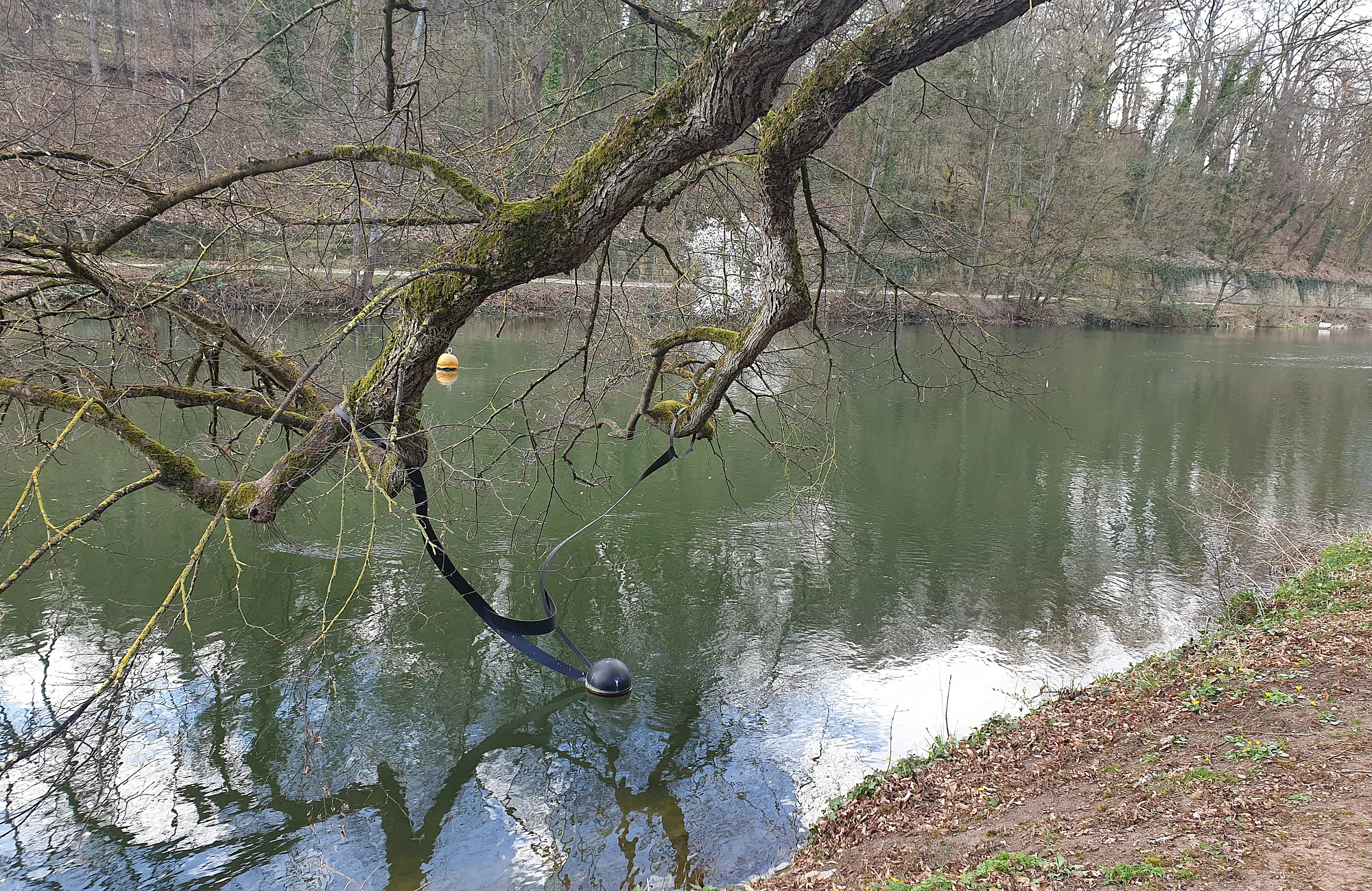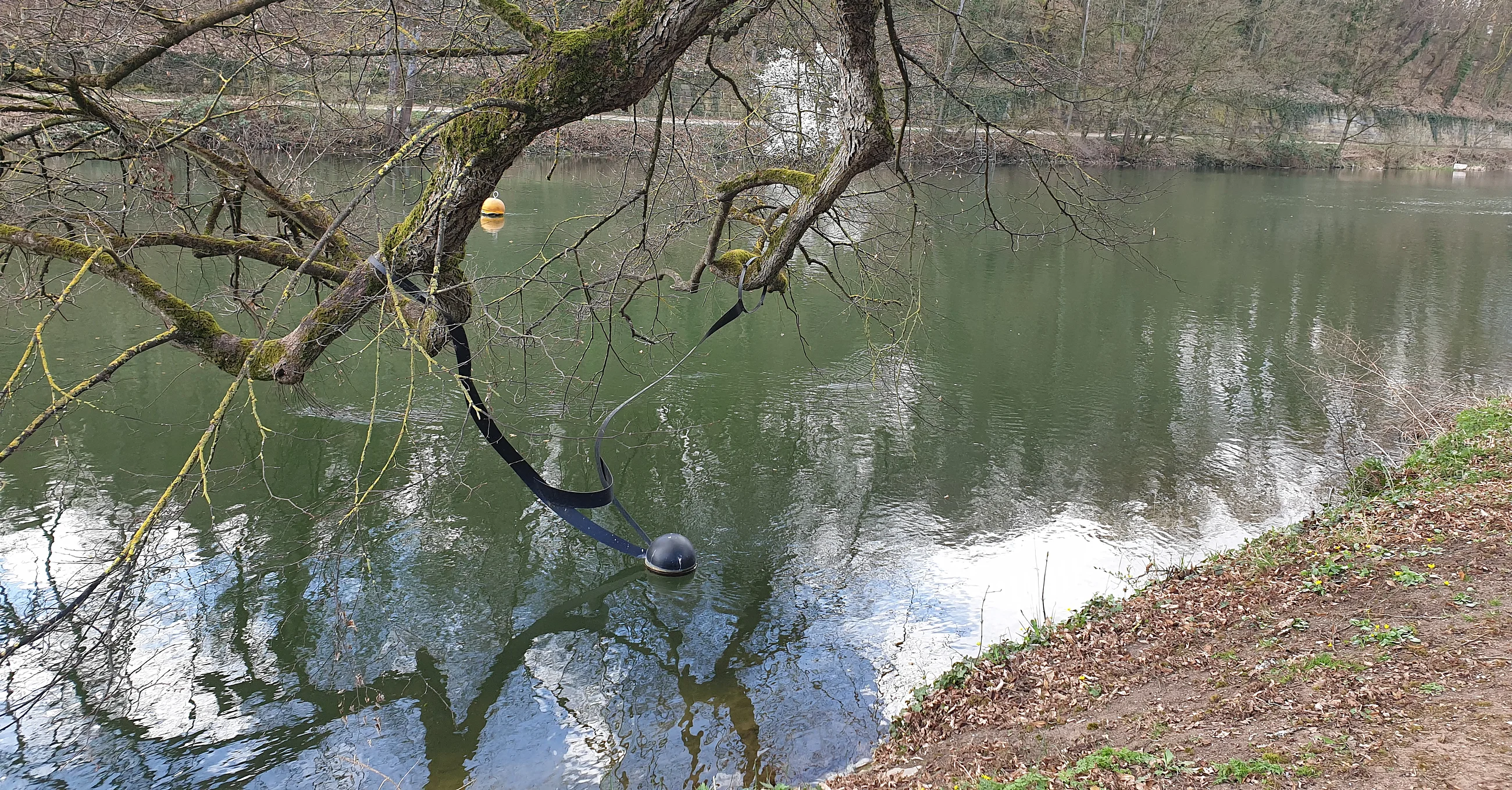 Ein Werk des portugiesischen Künstlers Rui Chafes. Im Anschluss an seine Ausstellung in der Bamberger Altstadt im Jahr 2018 schenkte der Künstler der Stadt Bamberg diese Skulptur: Eine Kugel an stählernen Bändern, die über dem Wasser der Regnitz zu schweben scheint.