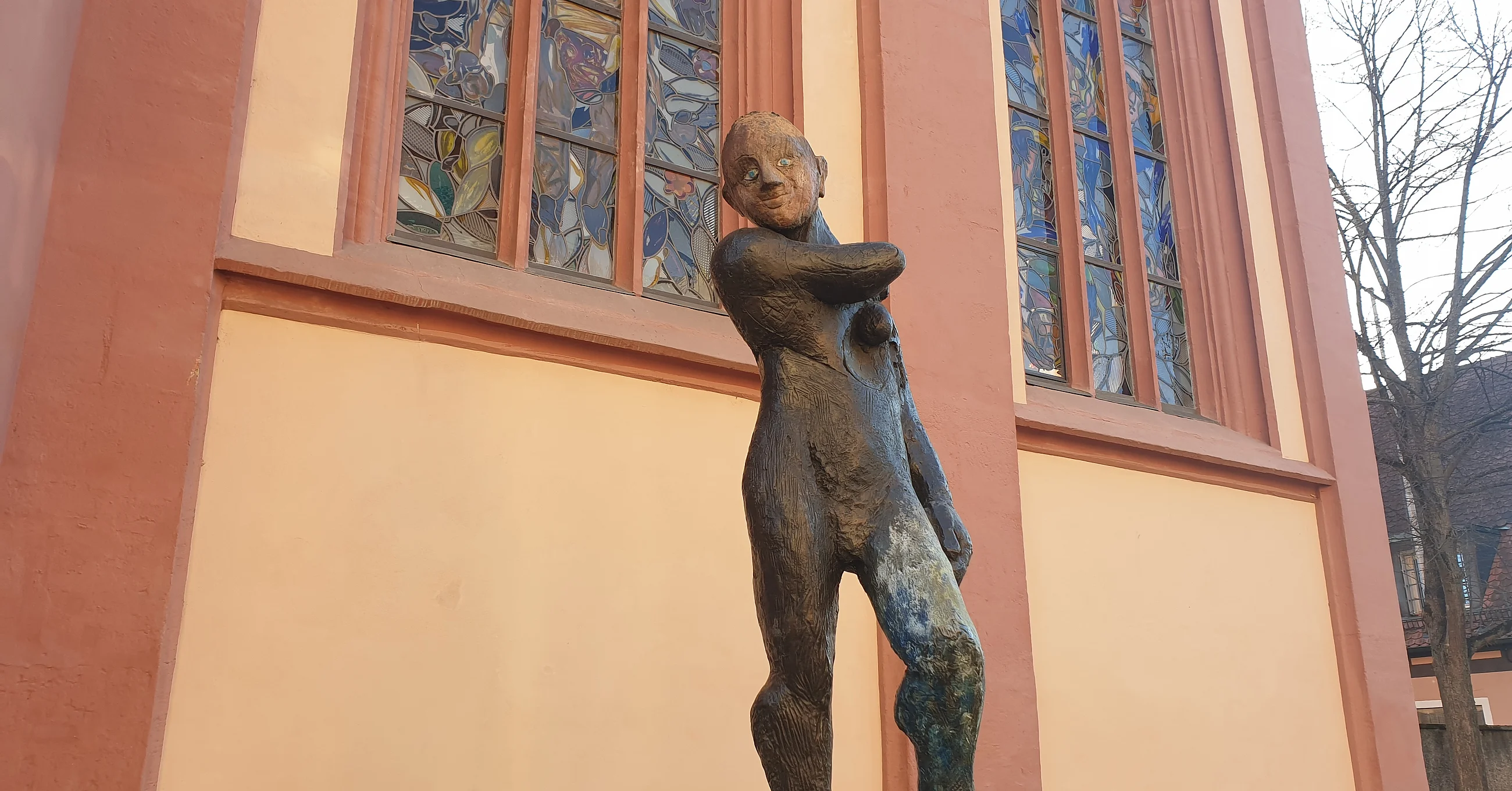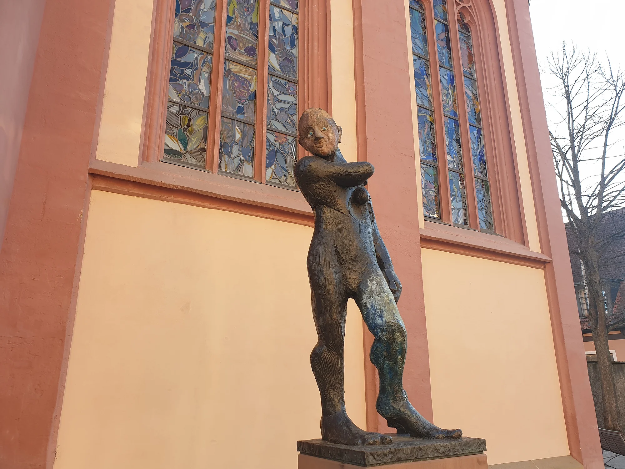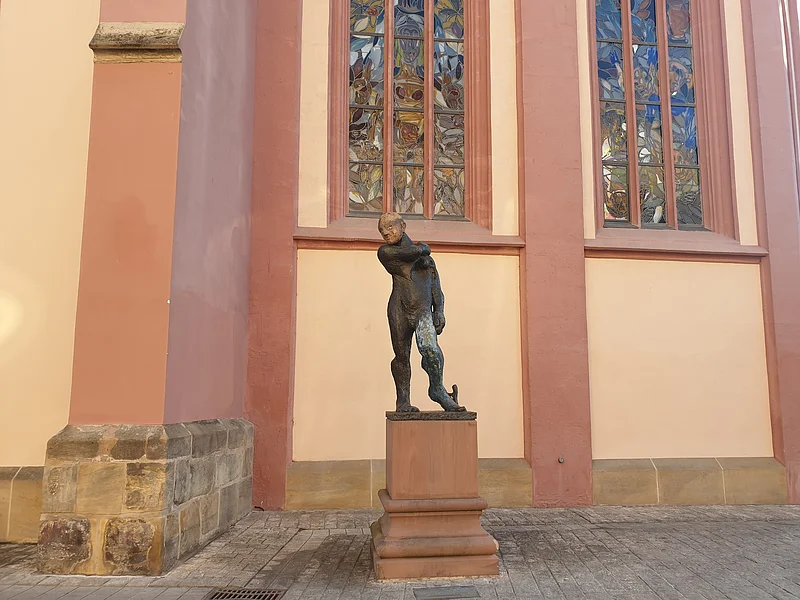 Die Skulptur „Apoll“, eines der archaischen, auf klassische Motive zurückgehenden Werke des viel diskutierten deutschen Künstlers Markus Lüpertz, hat seinen Platz neben dem Chor der Elisabethenkirche gefunden. Der „Meister" selbst, wie ihn seine Schüler nennen, hatte den Standort ausgesucht. Apoll gilt in der antiken Mythologie als Gott der Musen, des Lichts und der Heilkunst. Diese eindrucksvolle Figur verkörpert religiöse Vielfalt, gegenseitigen Respekt und Toleranz. Sie soll Schönheit und Eitelkeit als auch Zwietracht und Krieg widerspiegeln. Für den Künstler ist dieser „Apoll“ ein Wächter der Künste – sowohl als Beschützer, als auch als Rächer. Der Sockel ist 90 Zentimeter hoch und die Skulptur 1,88 m.