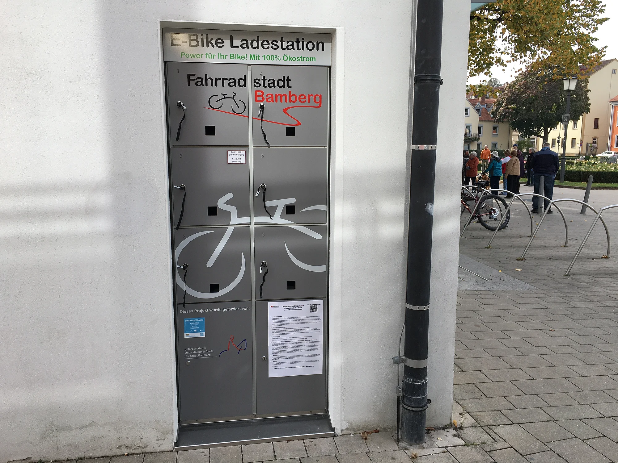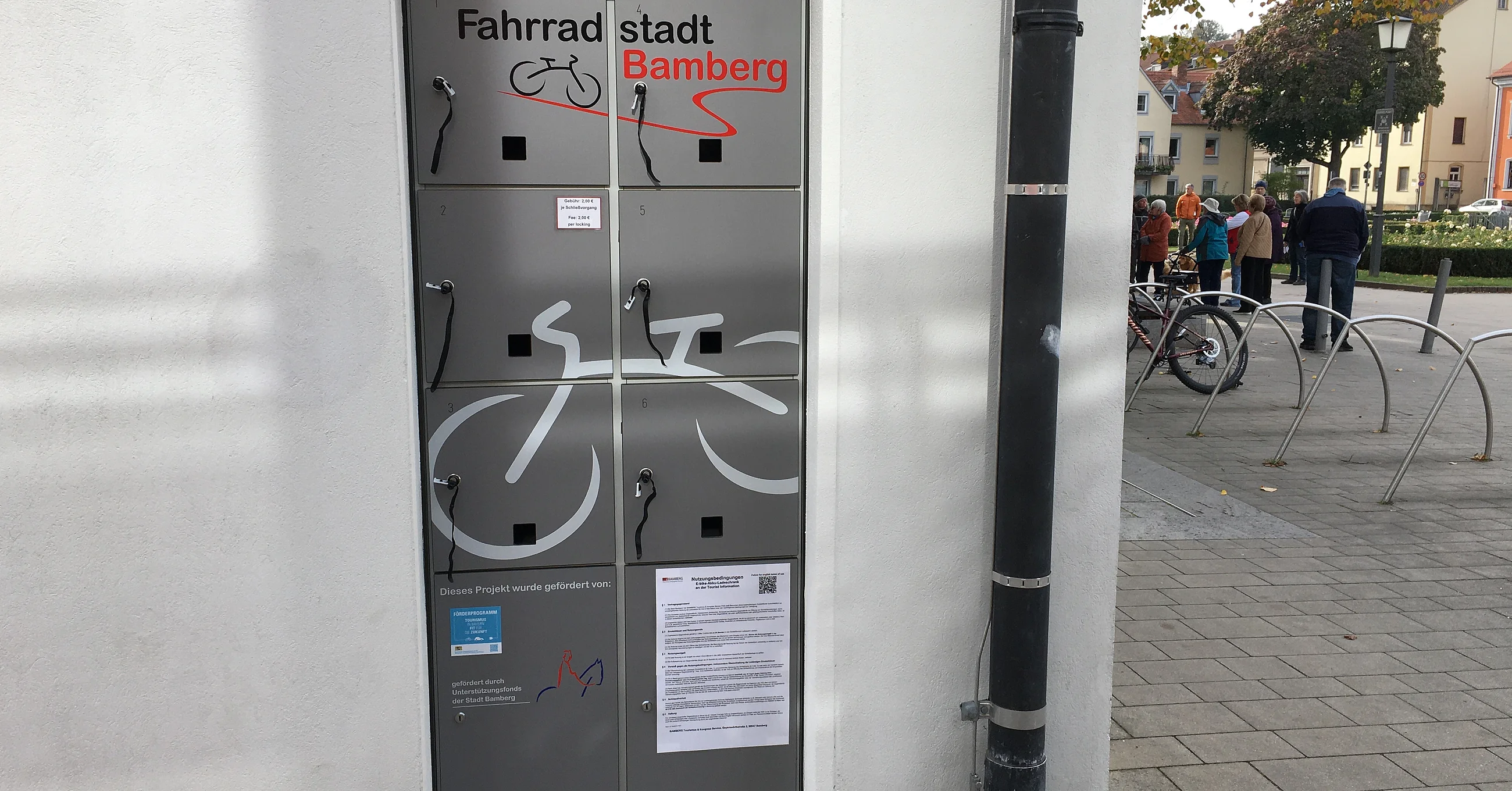 Der Ladeschrank mit sechs Schließfächern befindet sich direkt am nördlichen Seitenflügel unserer Tourist Information