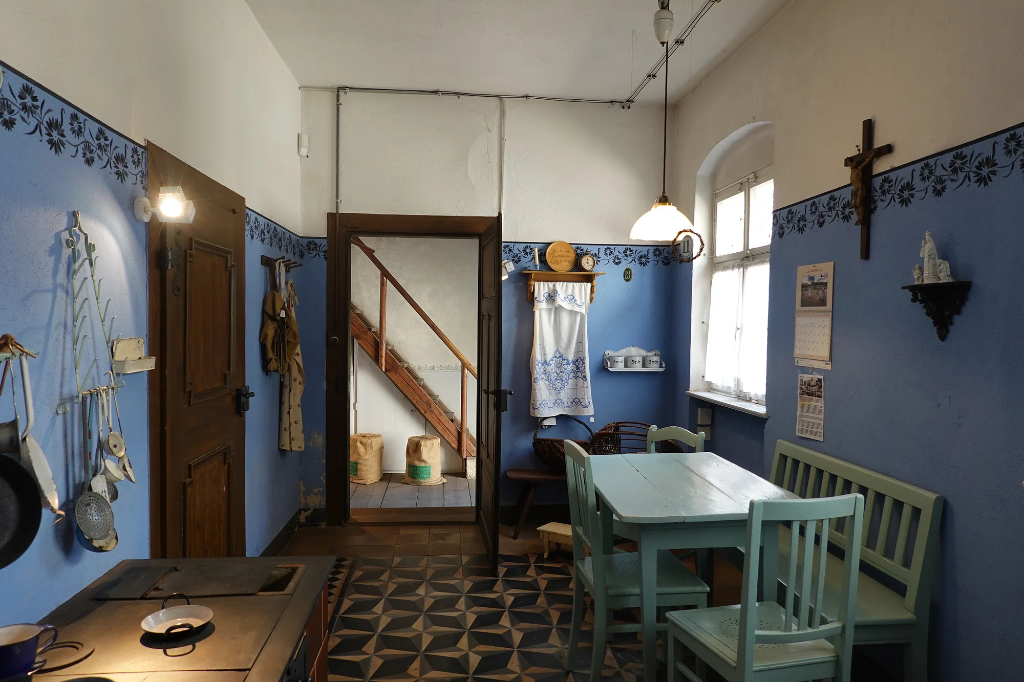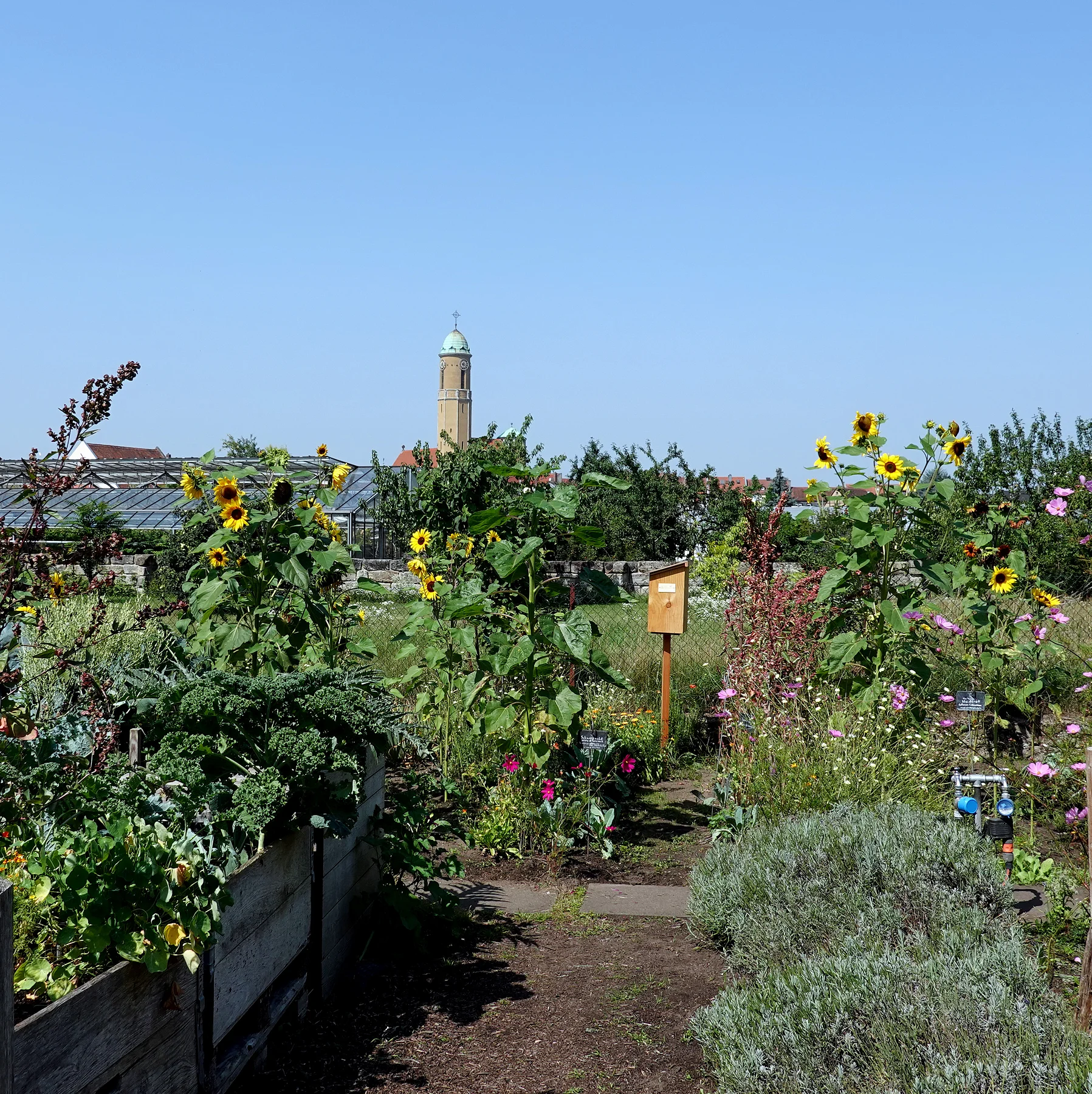 Im Hausgarten werden die Kulturpflanzen der beiden Berufsgruppen inklusive des Süßholzes angebaut, für das Bamberg seit etwa 1500 ein Quasimonopol hatte. Auch die Zwiebel fehlt nicht, der die Bamberger Bürgerschaft ihren Spitznamen „Zwiebeltreter“ verdanken.