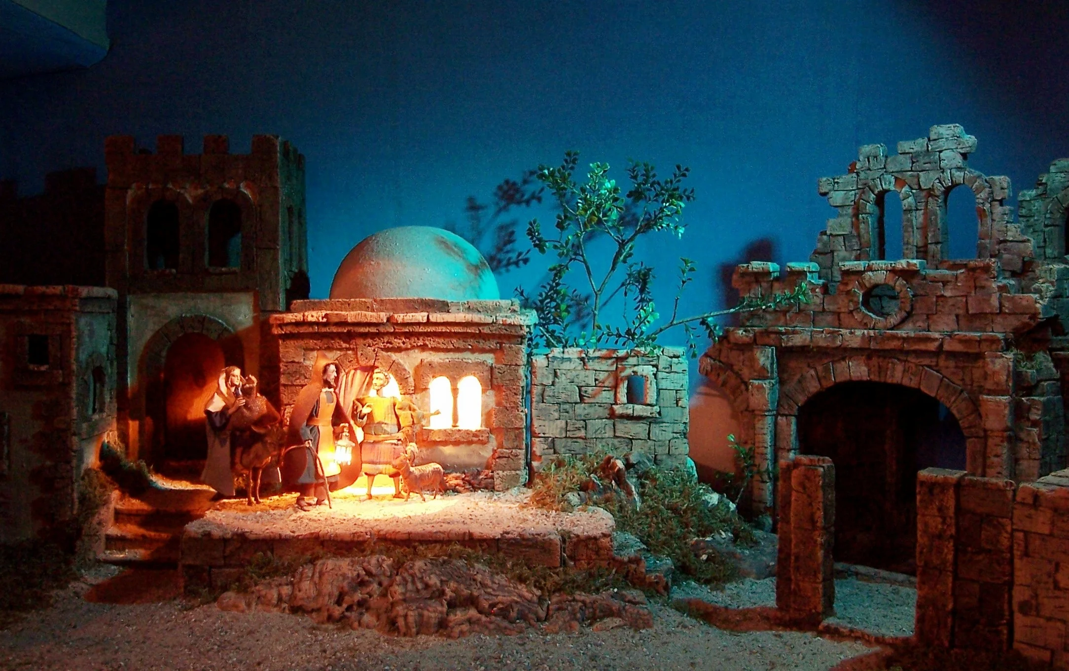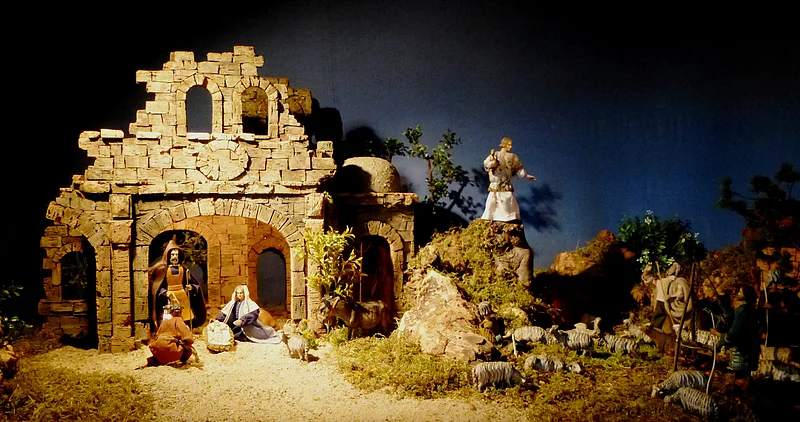 Jahreskrippe mit ca. 25 verschiedenen Darstellungen der Evangelien im Jahreskreis.