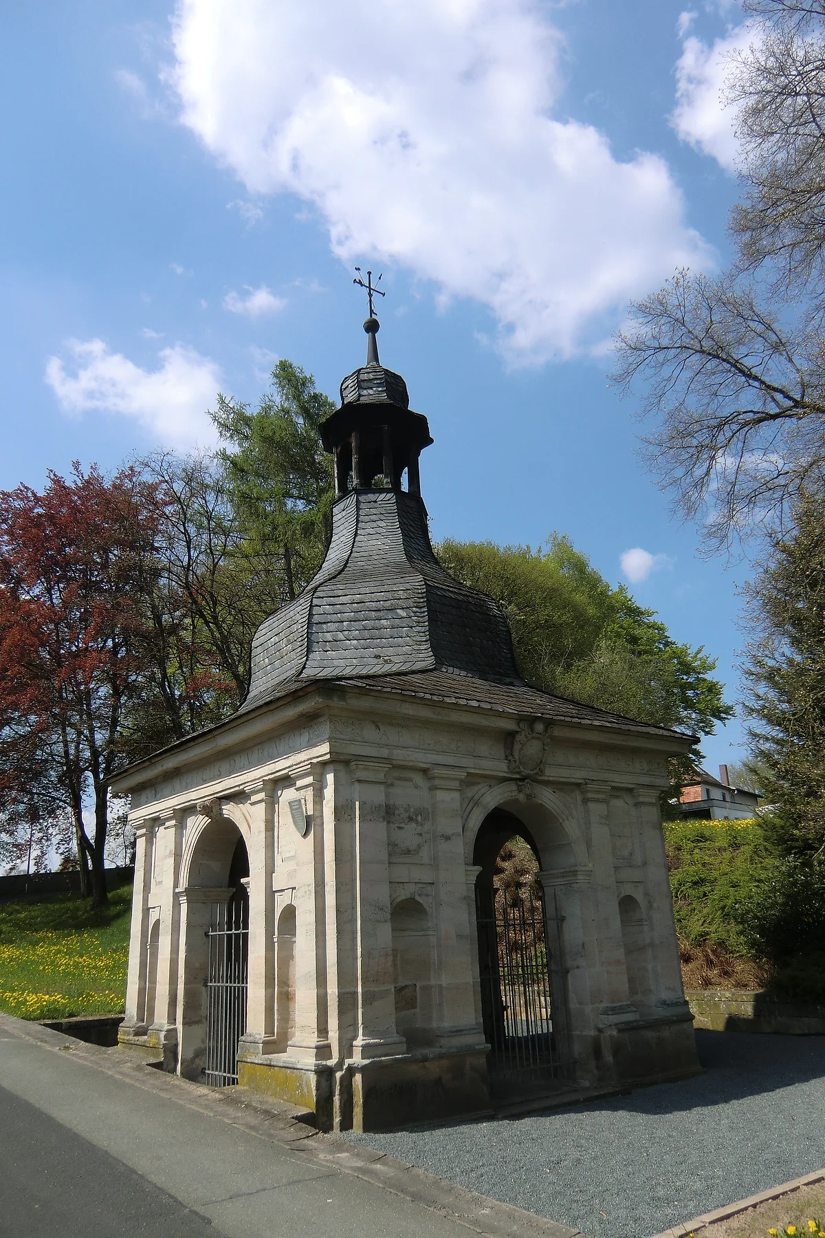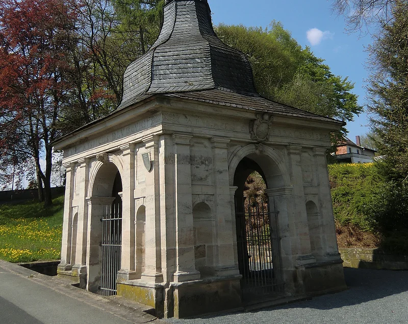 Wallfahrtskapelle Hl. Blut, errichtet von 1594 - 1597. In direkter Nachbarschaft befindet sich der Heilig-Blut-Brunnen. In Jahr 1626 entdeckte man hier eine heilkräftige Quelle. Das Brunnenhaus von Leonard Dienzenhofer wurde 1730 über dem Brunnen errichtet.