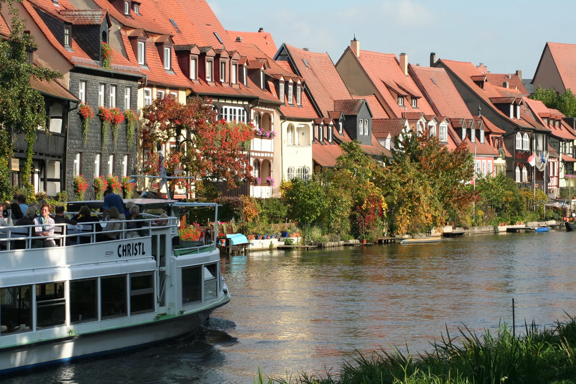 Die Fachwerkhäuser stammen überwiegend aus dem Mittelalter. Entlang der Regnitz reihen sie sich in einer hübsch geschmückten Zeile aneinander, Kähne dümpeln an den Anlegestellen in den Vorgärten. Mit dem Ausflugsschiff fährt man heute direkt an dieser einmaligen Häuserzeile vorbei.