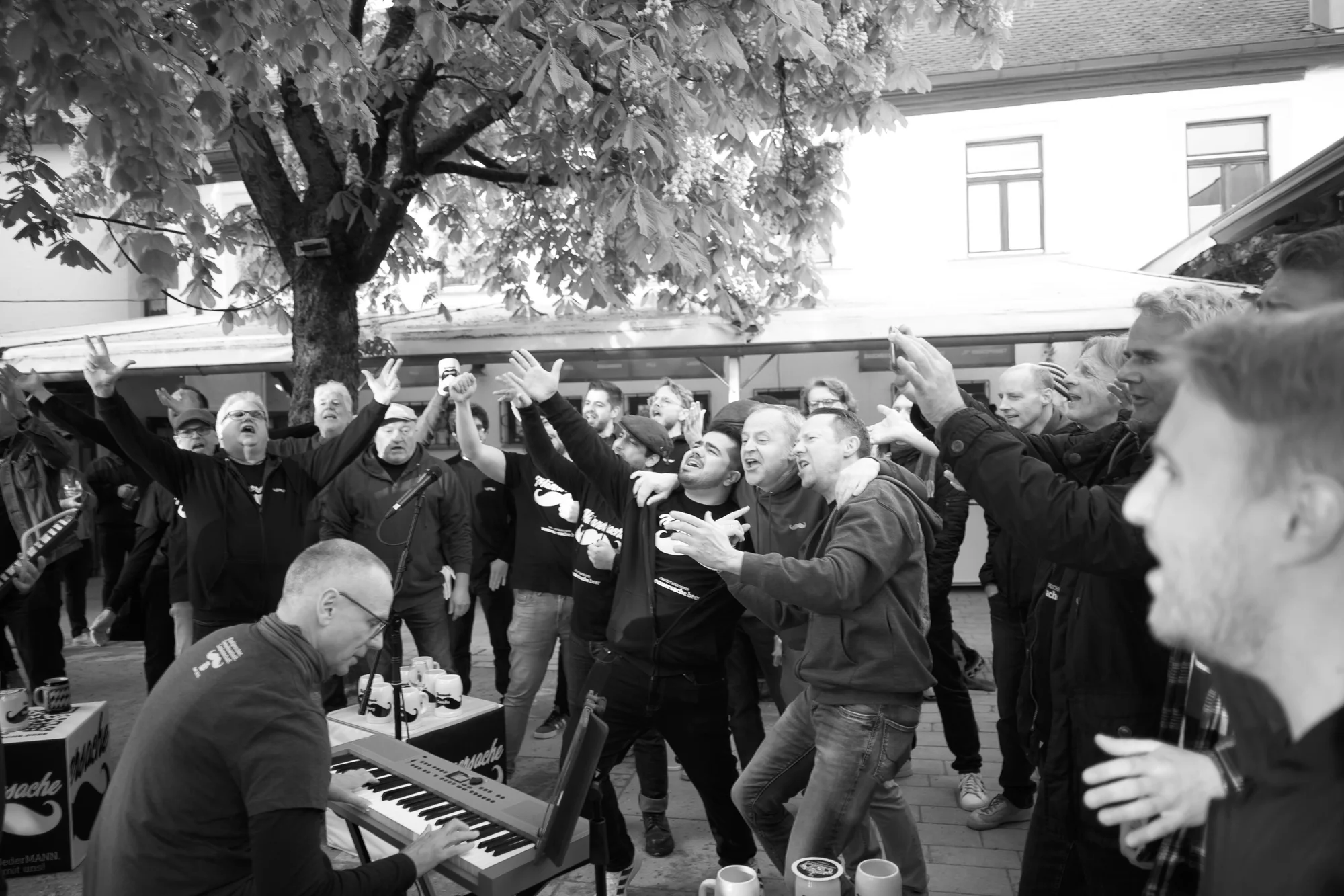 Biergärten werden so zu Partyzonen, Firmenevents unvergesslich und jede Veranstaltung zu etwas, was die Besucherinnen und Besucher nicht erwartet hätten. Dieser Chor erobert von Bamberg aus Deutschland und den Rest der Welt, z.B. auf Touren nach Prag, Irland, Hamburg und Österreich.