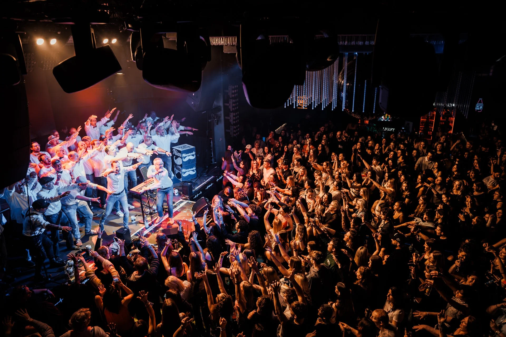 Der Chor singt dabei meist unverstärkt mit der reinen Kraft von 40 bis 60 Mann auf der Bühne und begeisterte auch bereits ein Publikum von fast 1.500 Menschen als Vorprogramm für die US-Showgröße Jason Derulo. Der Chor sucht die Nähe zu seinem Publikum und nutzt diese für energiegeladenen gut 30 Shows pro Jahr von bis zu zwei Stunden Länge mit einem Repertoire deutsch- und englischsprachiger Pop-, Rock- und Schlagersongs.