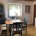 Im ersten Stock erwartet Sie die Fewo Gartenfreude mit freiliegenden Holzbalken und einer Atmosphäre, die sofort Geborgenheit vermittelt. Das großzügige Wohn-/Esszimmer mit offener Küche, zwei Schlafzimmer, ein helles Bad und die sonnige Terrasse bieten Platz und Komfort für bis zu vier Personen.