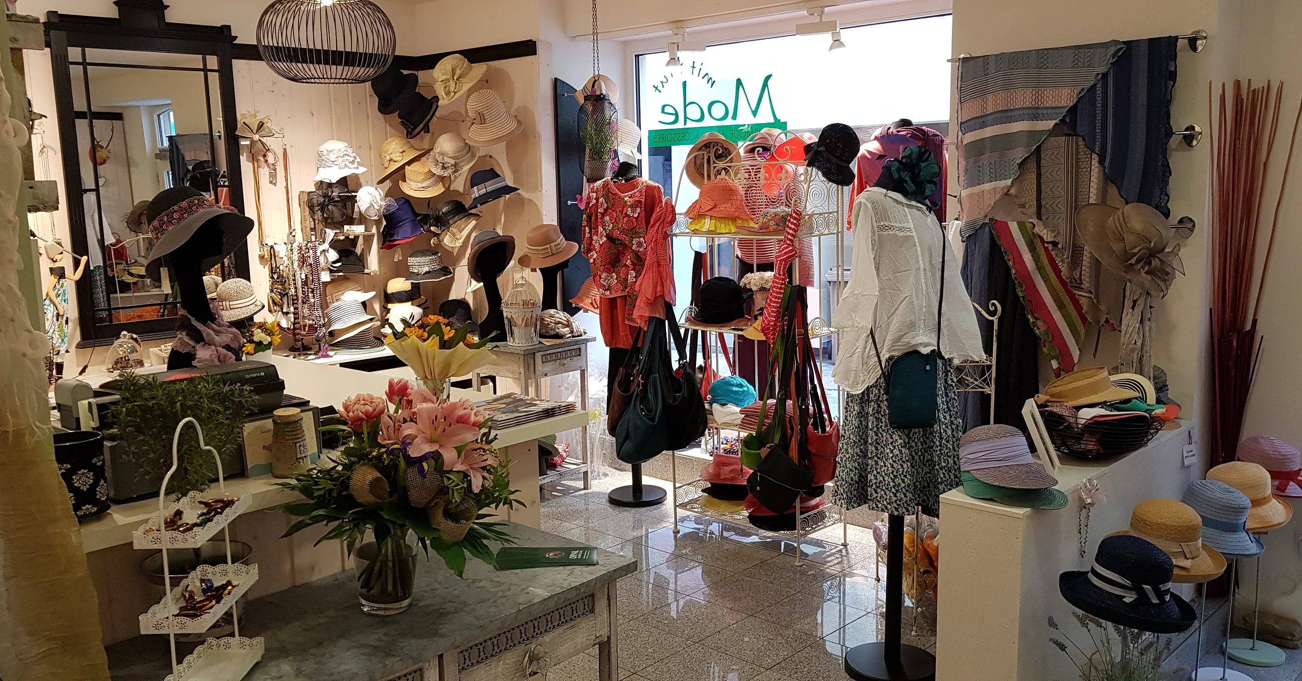 Sie wird abgerundet durch eine Vielfalt an besonderen Kopfbedeckungen für Damen und Herren sowie außergewöhnlichen Accessoires.
