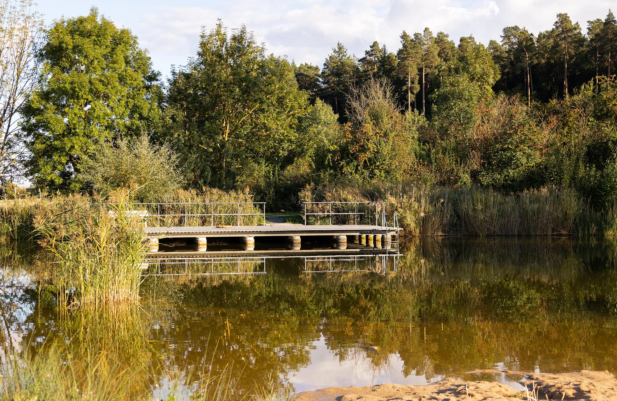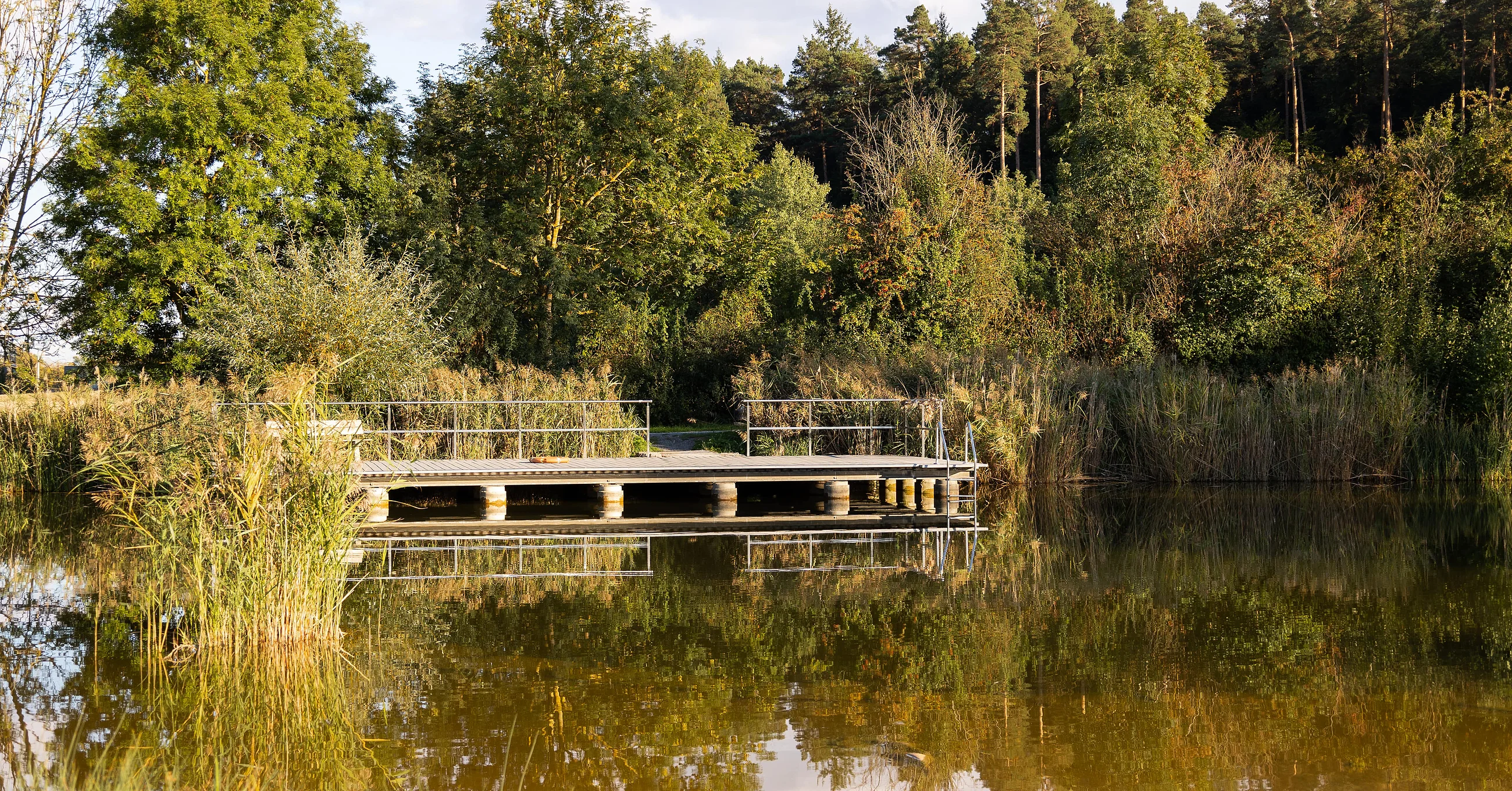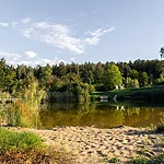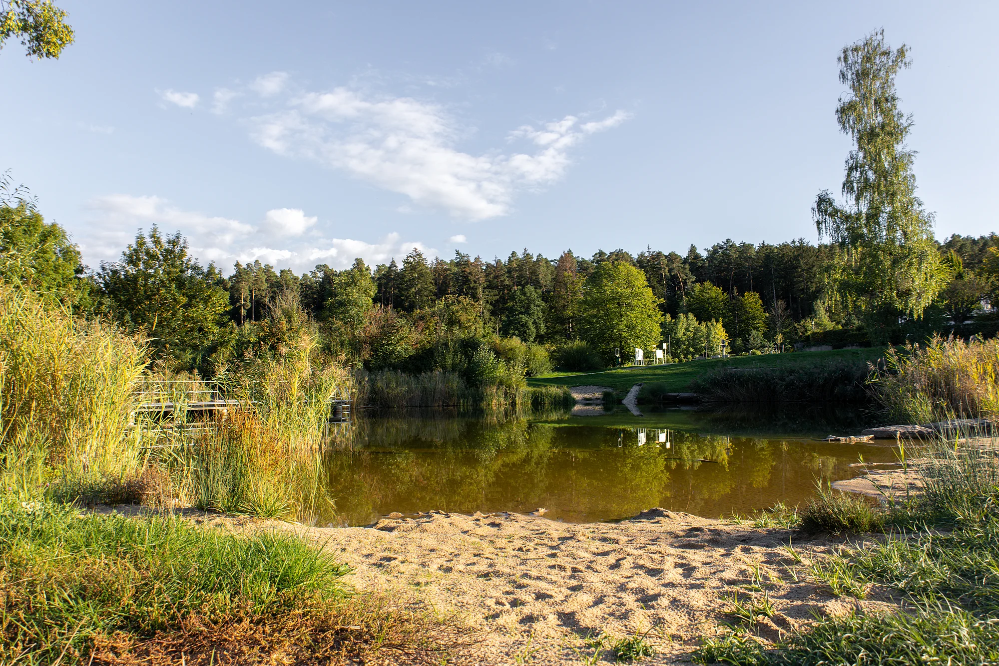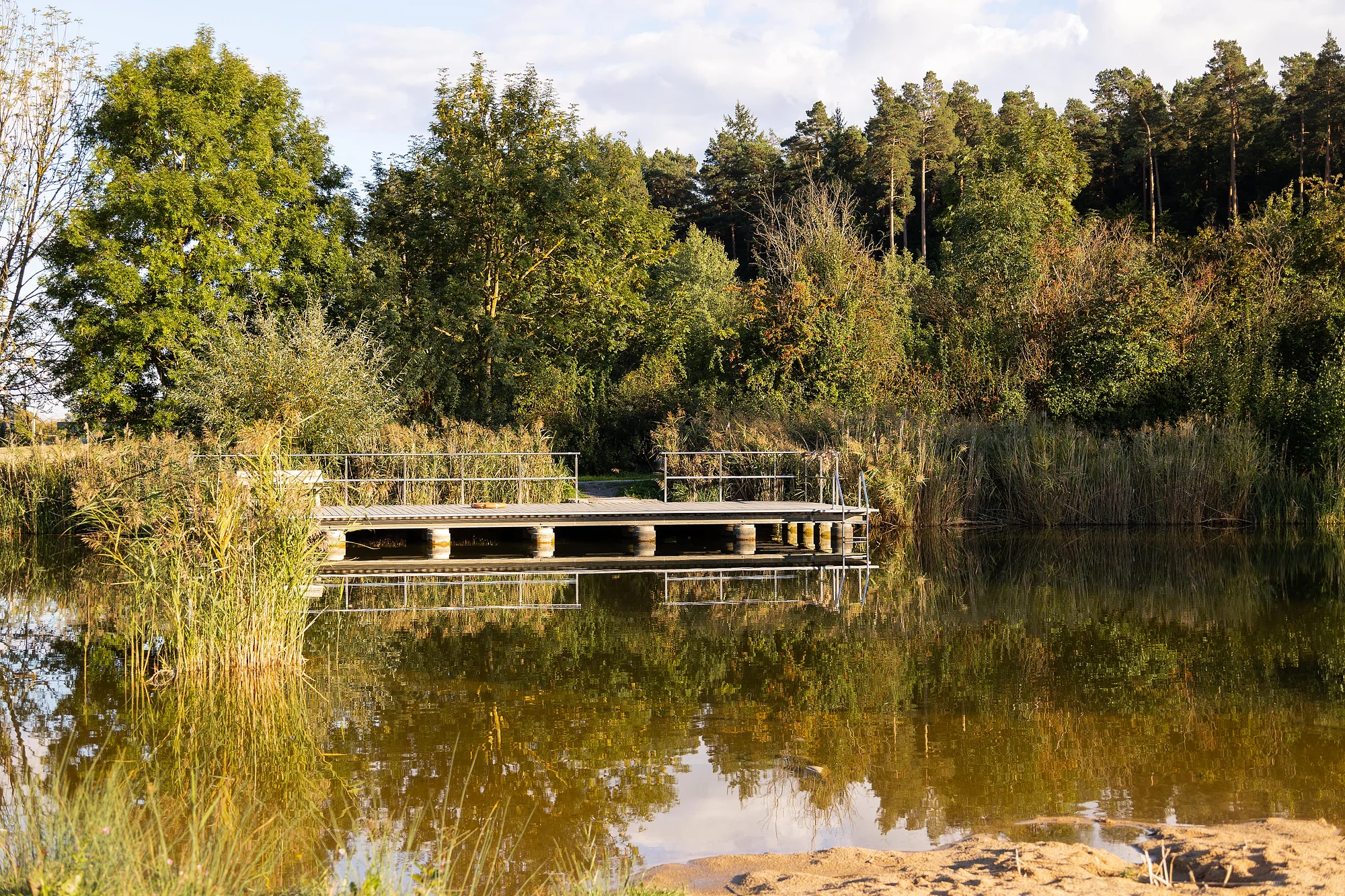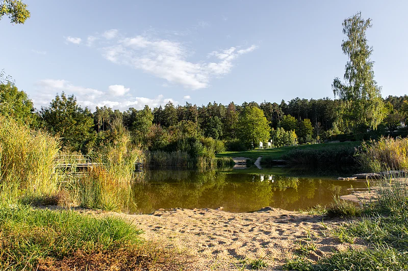 Der Badesee liegt gegenüber dem Alten Kurhaus Tabelsdorf, Seeleite 1