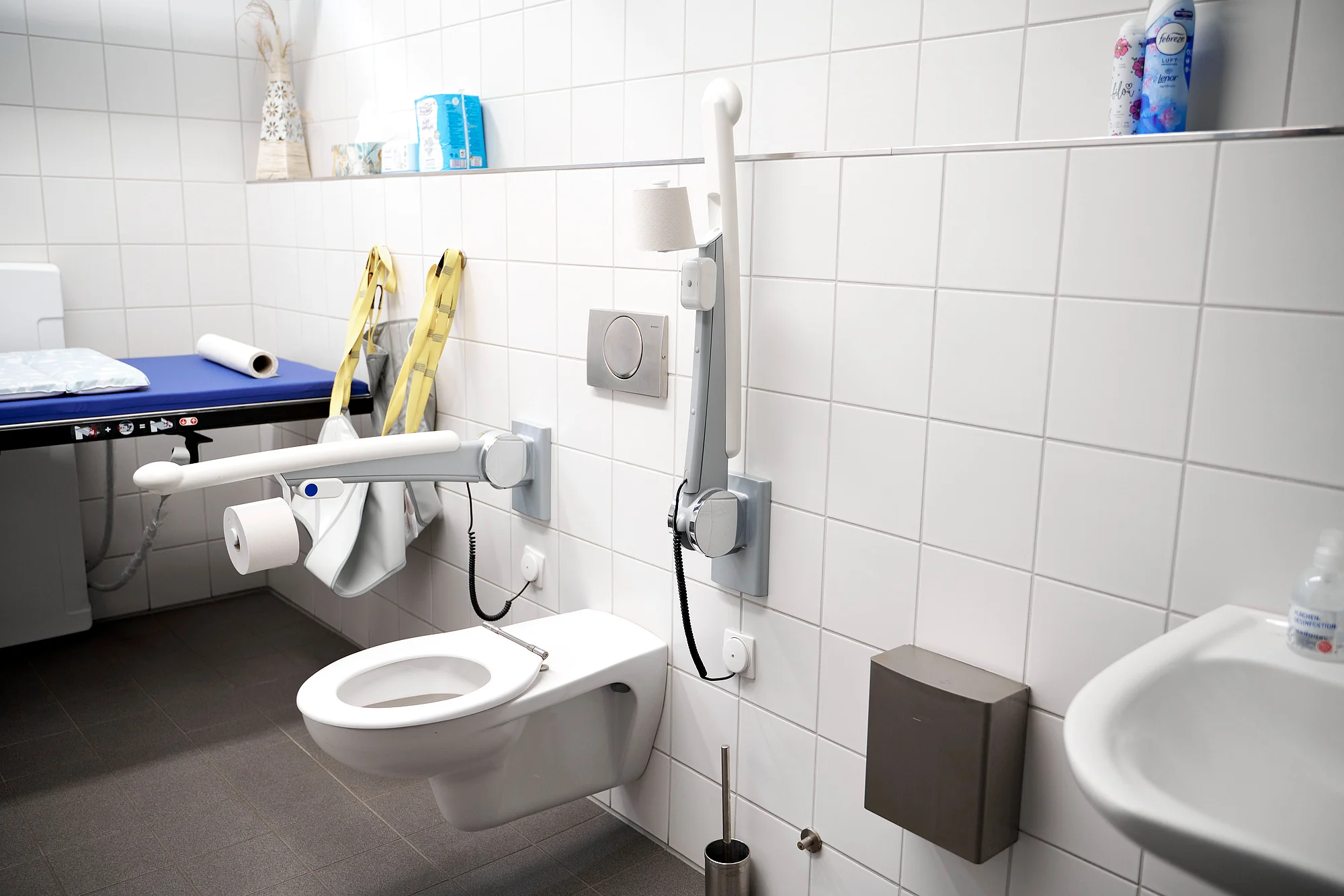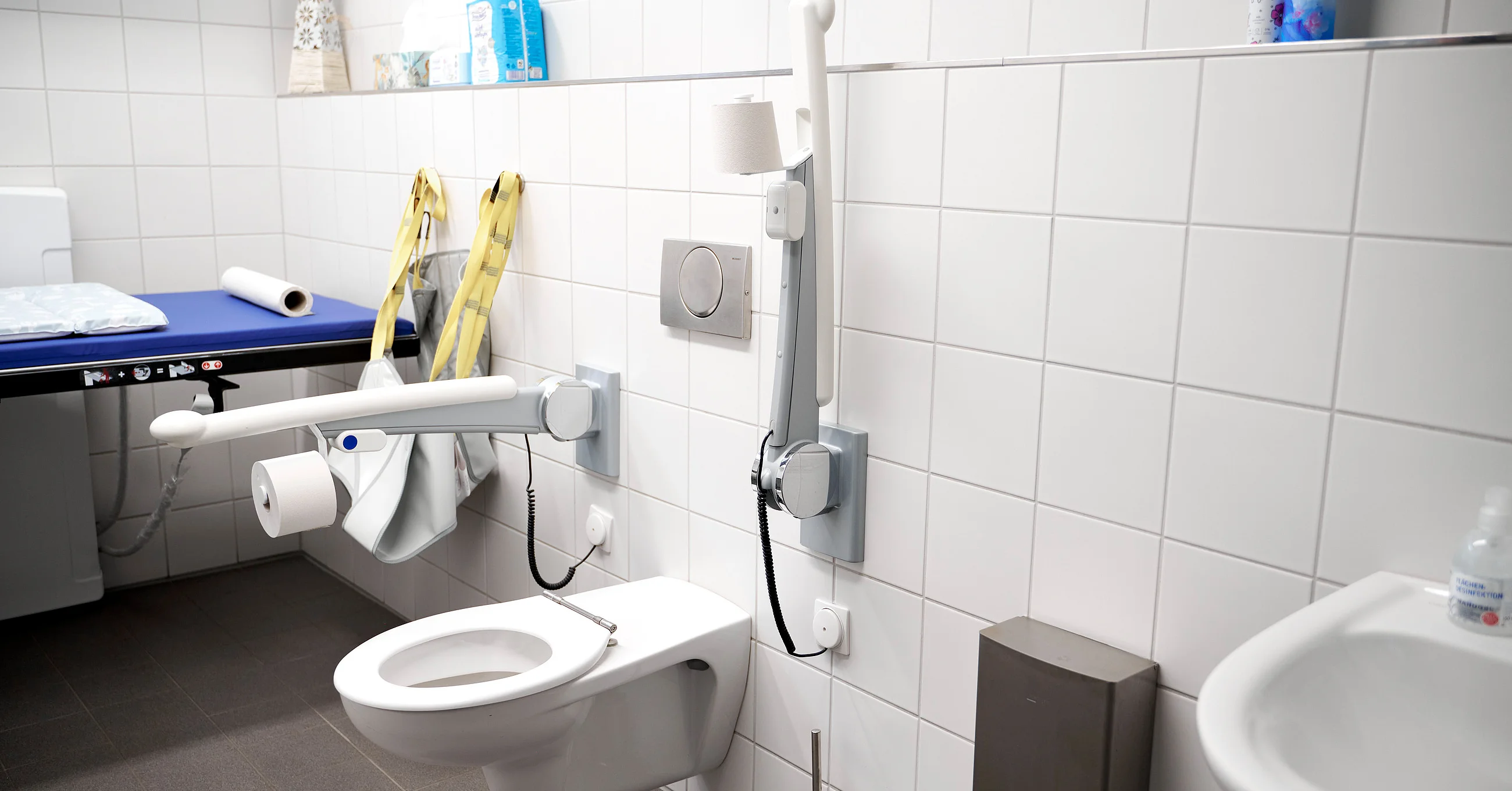 In dieser Toilette gibt es auch eine inklusive Toilette für Menschen mit Behinderung, die "Toilette für alle“: