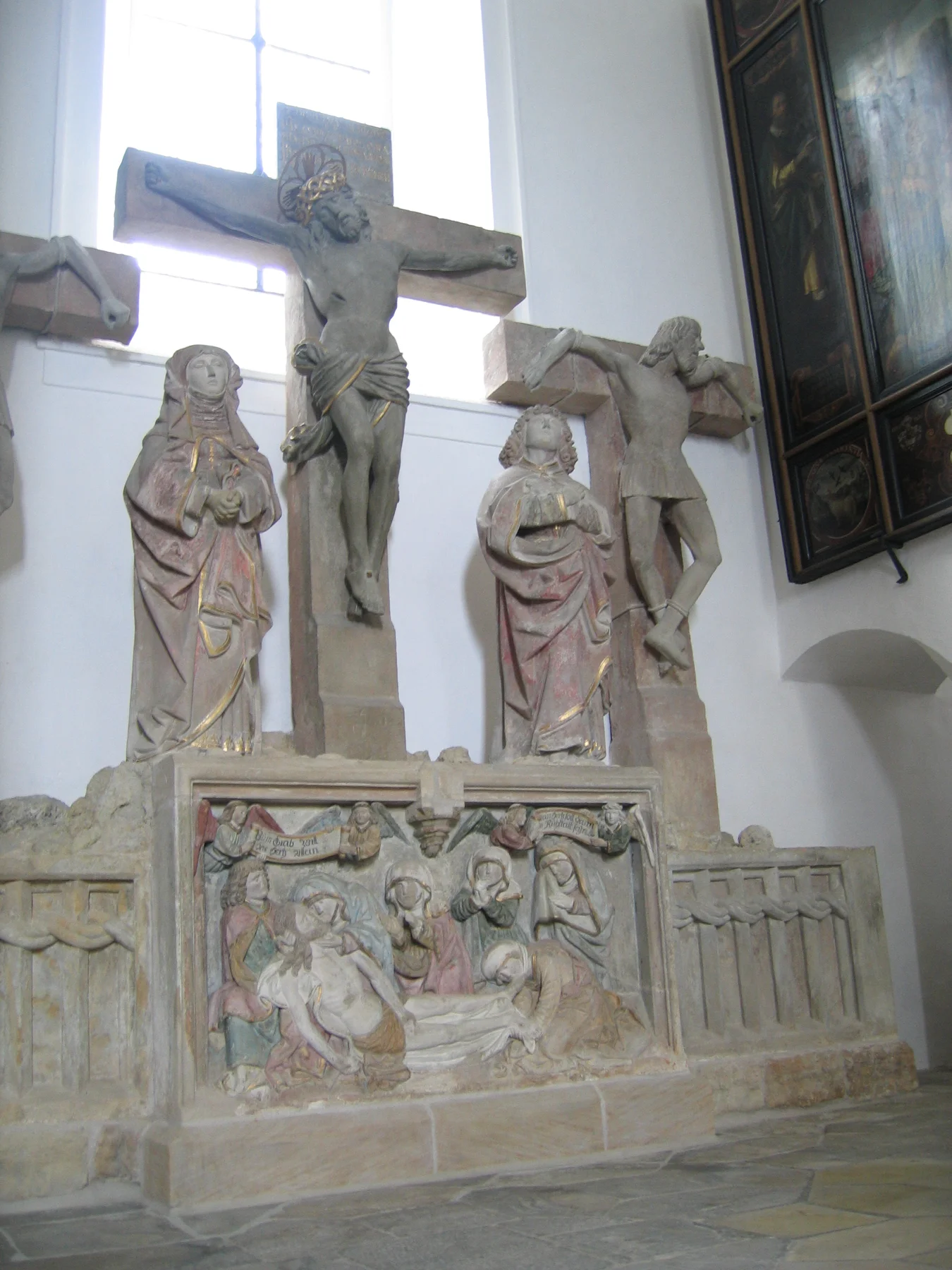 In der Kirche endet der historische Kreuzweg aus dem Jahr 1503, der über sechs Stationen mit sehr einprägsamen und eindrücklichen Steinreliefs die Aufseßstraße hinauf führt. In der Kirche ist die Kreuzigung und Grablege Christi dargestellt.