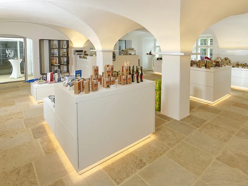 Wein und Spirituosen vom Michaelsberg, Taschen und mehr mit Himmelsgarten-Motiven, Regionales und Ausgewähltes aus Klöstern von nah und fern.