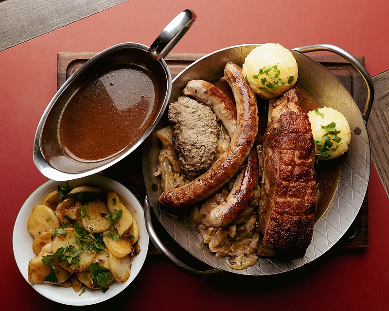 In gemütlicher Atmosphäre werden frisch gezapfte Biere nach historischen Rezepturen ausgeschenkt. Dazu serviert das Wirtshaus klassische fränkische Küche wie Schäuferla, Schnitzel, herzhafte Brotzeiten und Kaiserschmarrn und lädt zum genussvollen Einkehren ein.