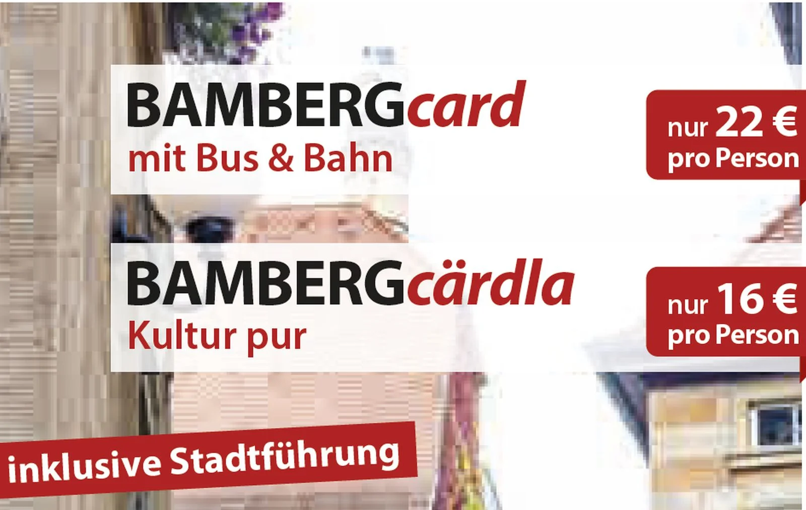 Für Kulturinteressierte sind unsere City Cards fast ein Muss, bei der BierSchmecker®Tour entdecken Sie auf eigene Faust das berühmte Bamberger Bier und die tägliche Führung „Faszination Welterbe“ zeigt alle Highlights.