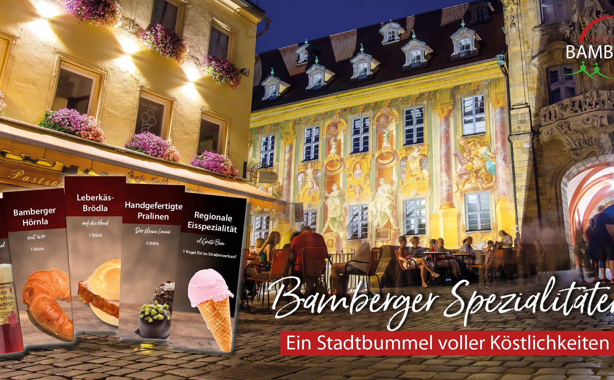 Kombiniere den Spezialitätengutschein mit einer Stadtführung – so erlebst du Bamberg mit allen Sinnen: erst die Geschichten hinter dem Weltkulturerbe, dann die Genüsse, die man direkt schmeckt