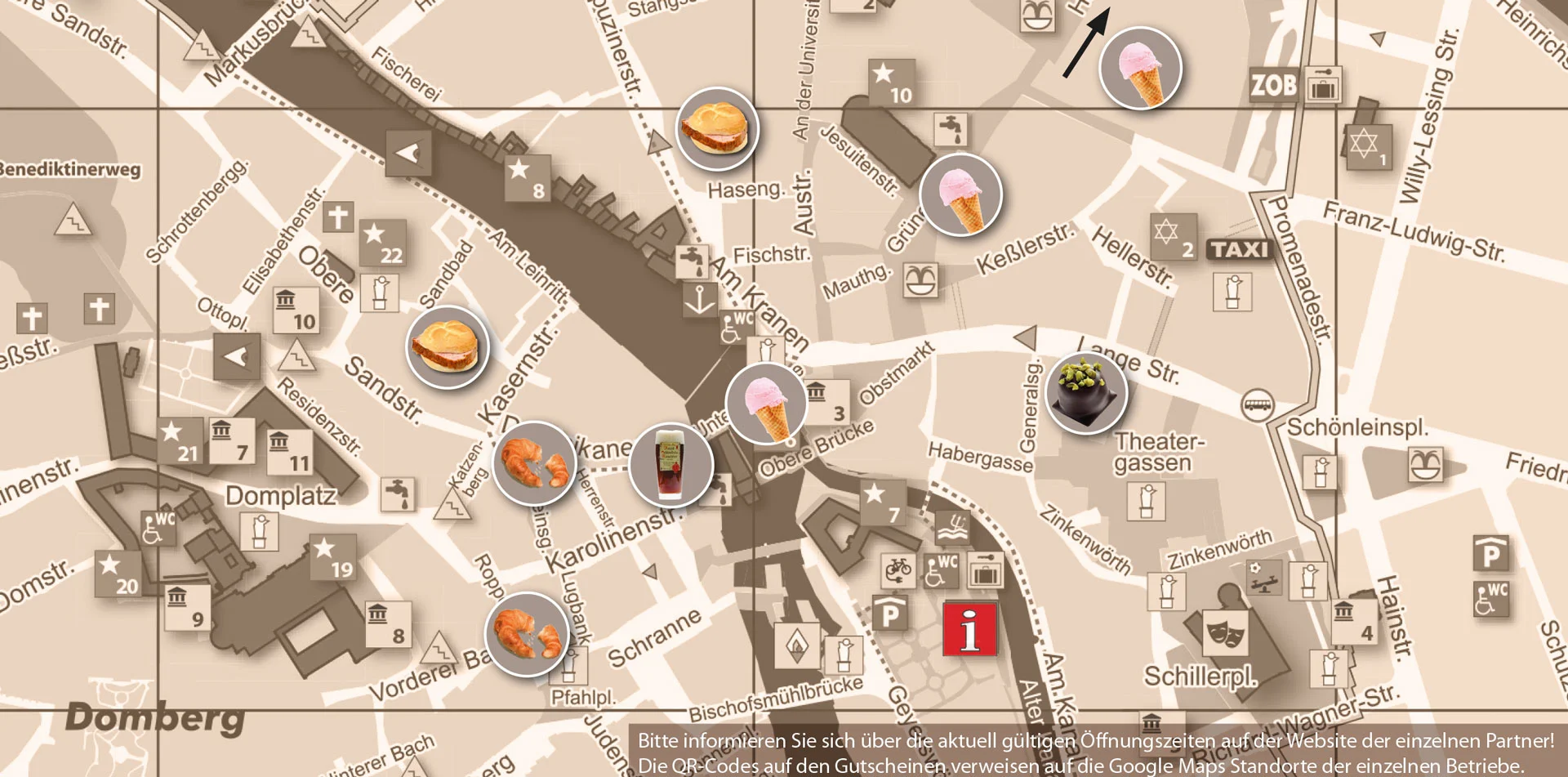 - QR-Codes auf dem Gutschein führen dich direkt zu den Einträgen der Partner auf Google Maps