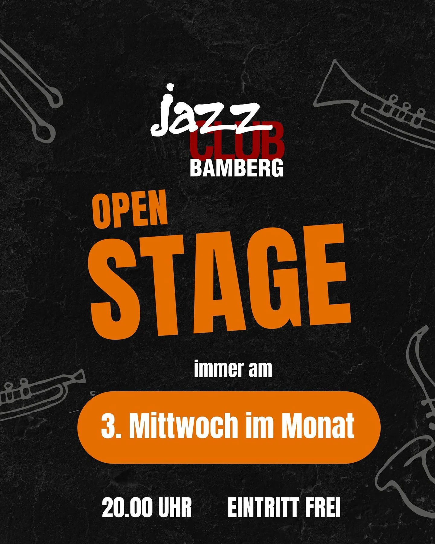 Wir erweitern unser Angebot für den Jazz-Nachwuchs mit einem neuen Format: Jazzclub Open Stage. Ihr habt eine Band und möchtet eure Songs testen? Du hast einen neuen Song gelernt und willst ihn mal live spielen? Du willst einfach mal was ausprobieren oder andere Musiker:innen treffen? Oder möchtest du einfach nur Live-Musik in cooler Umgebung hören? Dann komm vorbei! Flügel, Drumset und Bassamp sind vorhanden, auch Gesang ist möglich! Der Unterschied zu unserer etablierten Jazzclub Session: Es gibt keine festgelegte Band, die den ganzen Abend durchspielt. Open Stage ist ein frisches Format, das Nachwuchstalenten maximalen Freiraum bietet. Zur Deckung unserer Unkosten lassen wir einen Hut mit Bitte um Spenden rumgehen.