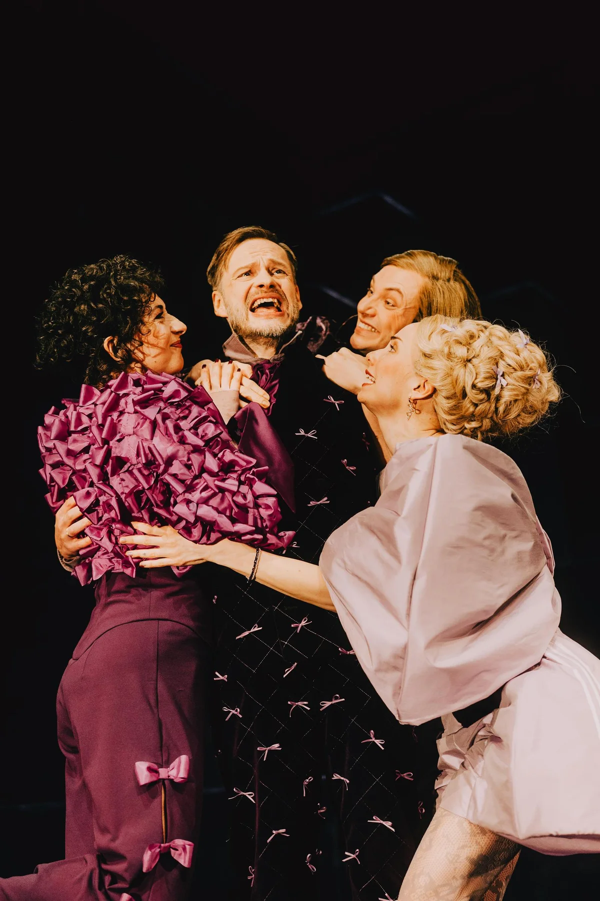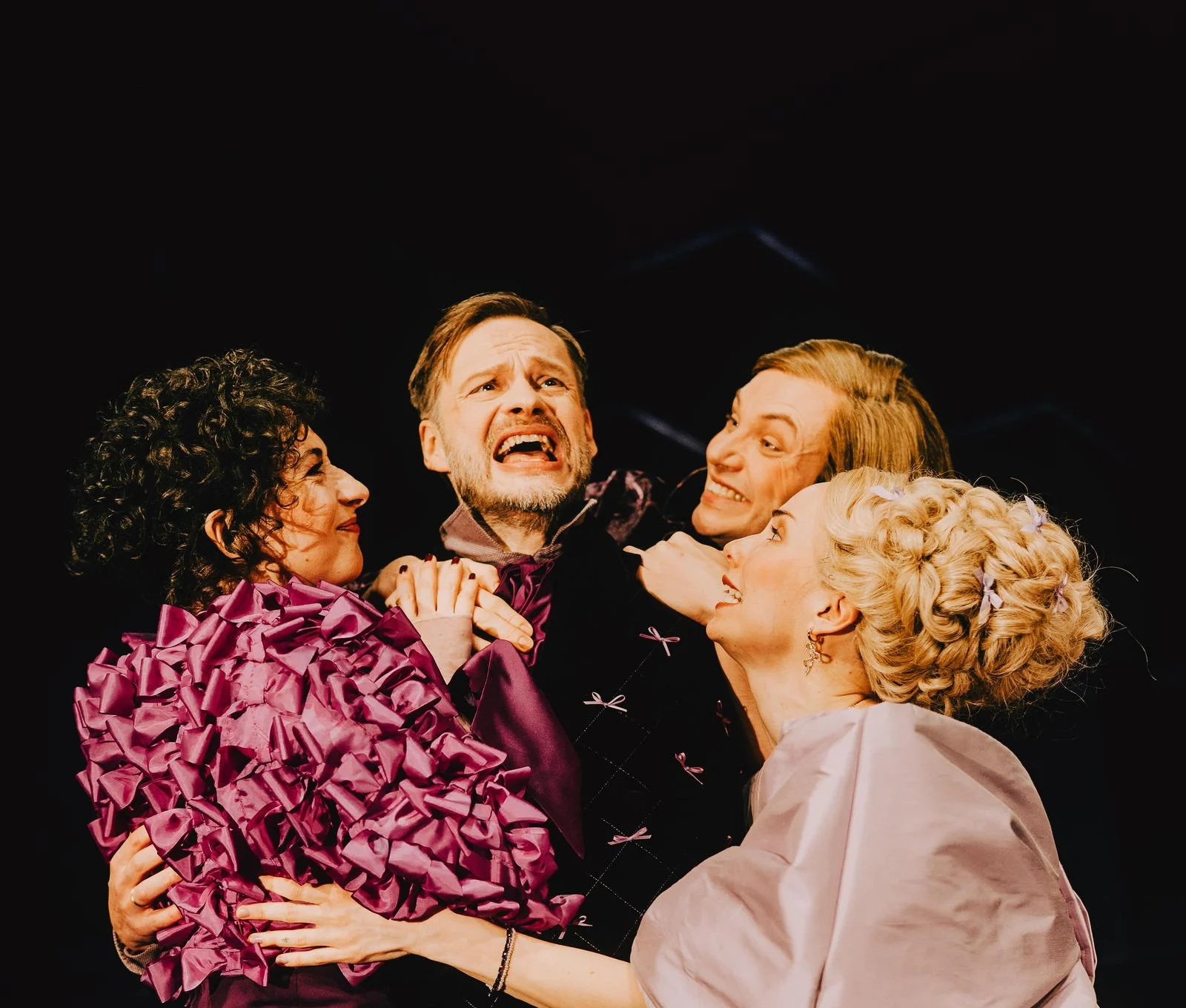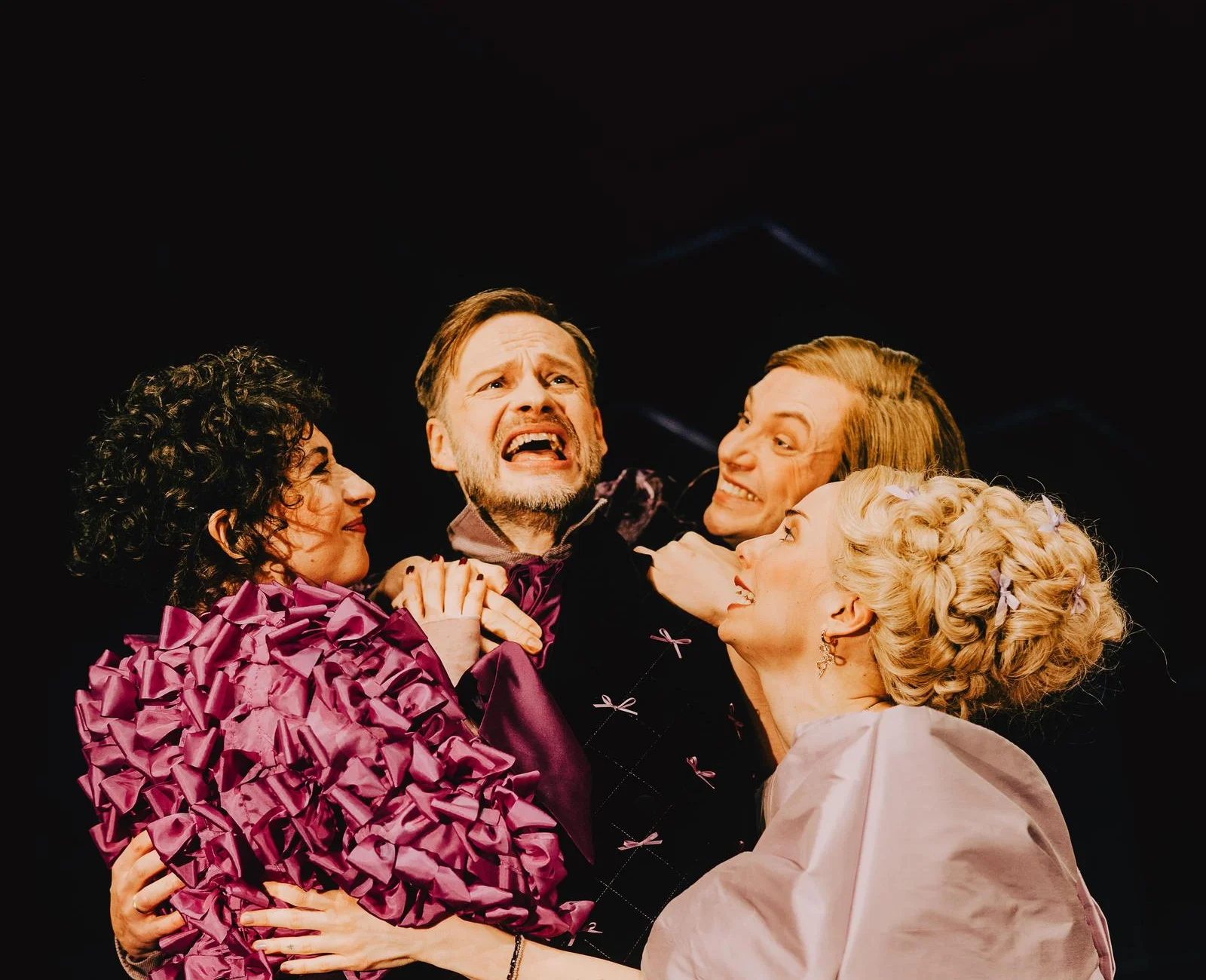 Wir alle müssen sparen, aber wie? Orgon, Geschäftsmann in der Krise, muss seiner an Luxus gewöhnten Familie beibringen, dass sie über ihre Verhältnisse lebt. Doch auf ihn hört ja keiner. Deswegen holt er sich Tartüff ins Haus, einen Prediger des Konsumverzichts und der Enthalt samkeit, der hauptsächlich dafür sorgt, dass andere den Gürtel enger schnallen. Doch je mehr Tartüff das Regiment im Hause Orgon übernimmt, desto mehr regt sich Widerstand gegen die „Spaßbremse“. Speziell Elmire, Orgons zweite Frau, die sich betrogen fühlt, weil sie Geld geheiratet hat und jetzt zu wenig davon bekommt, erkennt sehr bald die Schwächen des häuslichen Moralapostels und fordert Tartüff mit ihren Waffen heraus. – Molières berühmte Komödie über Scheinheiligkeit und Verführung, Wohlstand und Verlust passt verblüffend treffsicher in unsere Zeit.