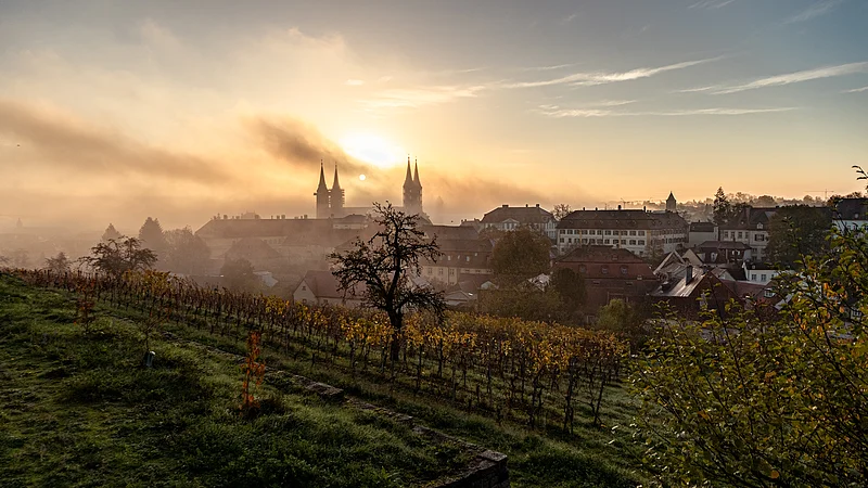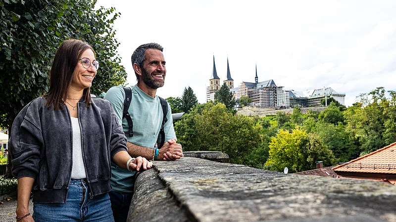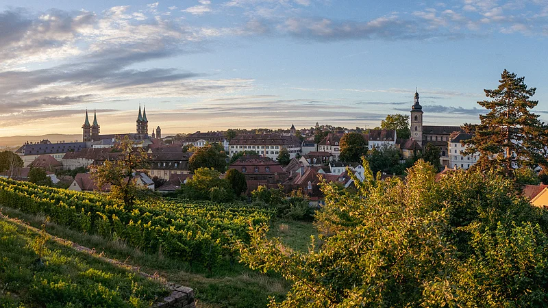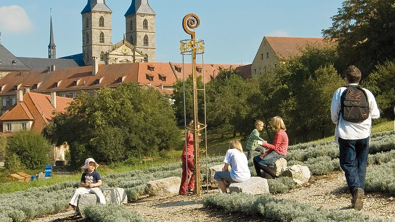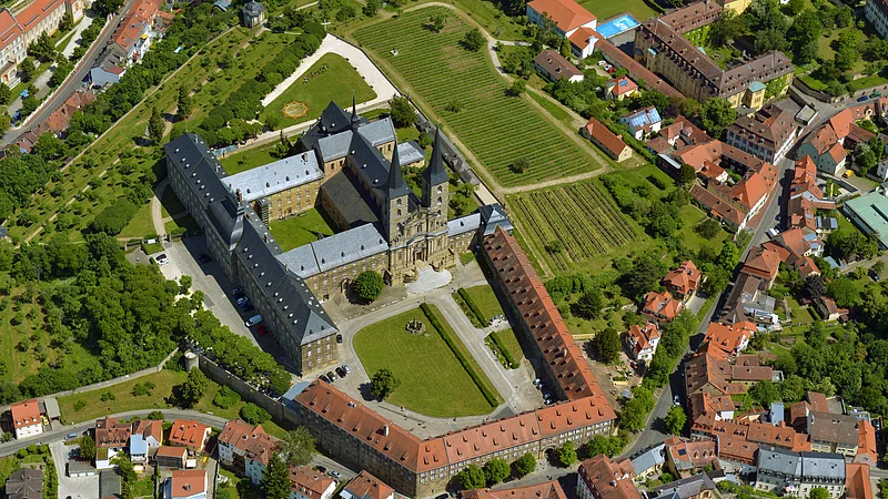 Hoch über der Altstadt erhebt sich der Michaelsberg, einer der sieben Hügel Bambergs. Seit über tausend Jahren prägt er das Stadtbild. Eindrucksvolle Bauwerke, ein Terrassengarten, Streuobstwiesen und ein Weinberg umgeben die barocke ehemalige Klosteranlage. Von hier aus eröffnet sich ein unvergleichlicher Blick über die Welterbestadt.